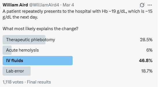 - Initial hemoglobin: 18.8 g/dL