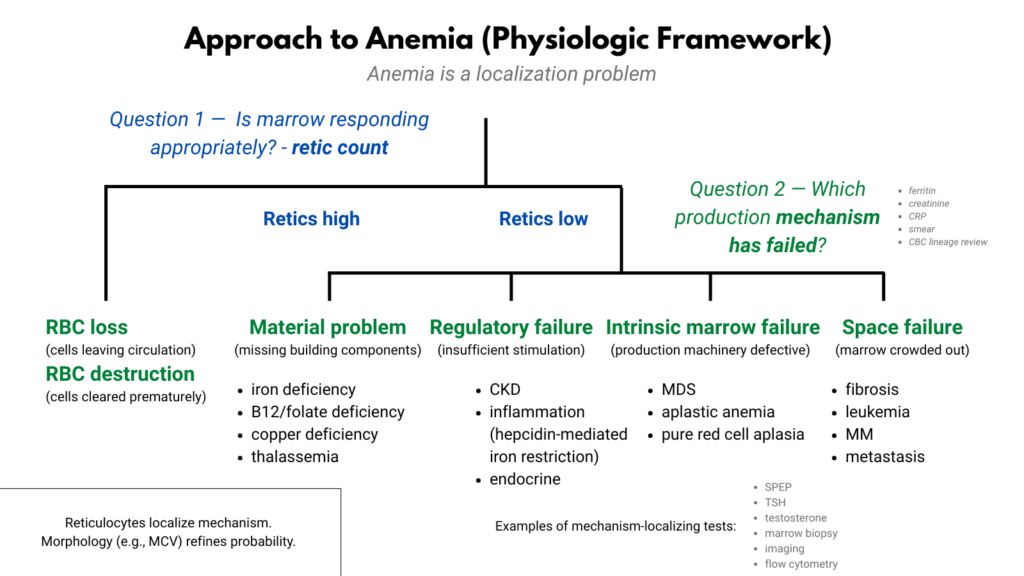 Anemia is not fundamentally a diagnosis. It is a physiologic disturbance. And physiologic states are best understood not by naming them, but by localizing them. Diagnosis is not the beginning of reasoning. It is the endpoint of successful localization.