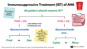 - Owing to the high risk of recurrent bleeding and rarity of spontaneous remissions, immunosuppression is recommended for all patients with AHA irrespective of presence of bleeding, inhibitor titer, or identification of underlying disease.