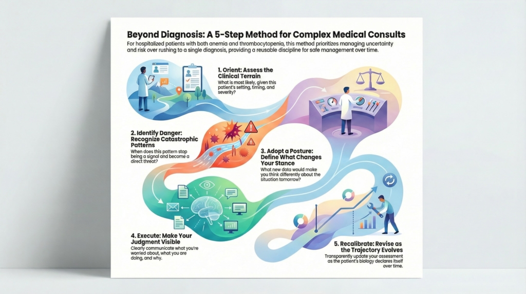But in real consult medicine, the central risk is not missing a rare diagnosis.