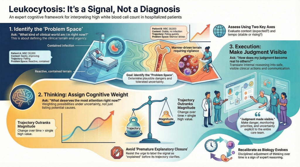 This series approaches leukocytosis through three distinct cognitive layers: