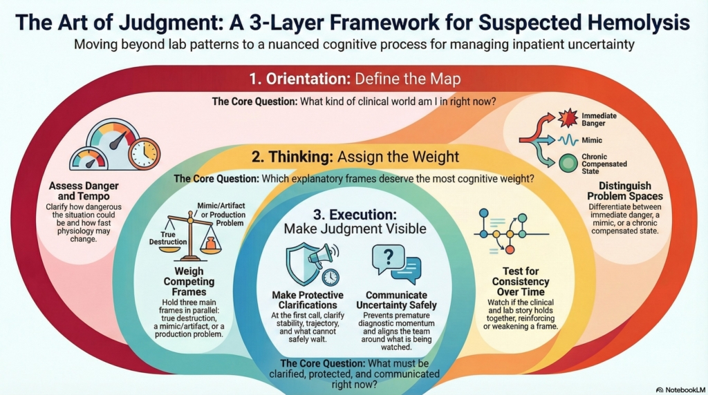 This series approaches suspected hemolysis through three distinct cognitive layers: