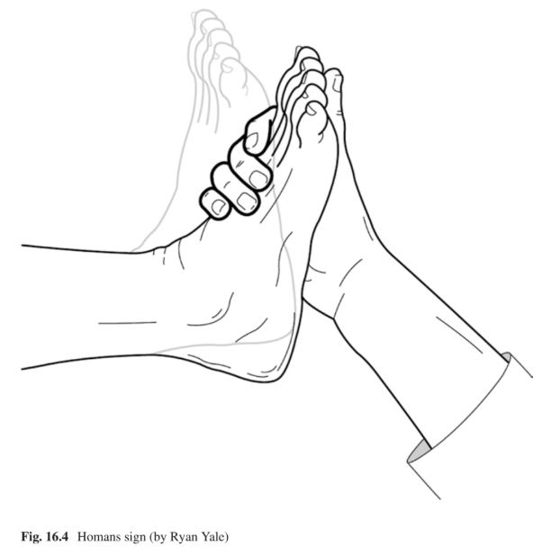 - Strong pressure is exerted on the soles of the patient’s feet with both thumbs along the medial plantar surface. Clear pressure pain is a possible sign of DVT.