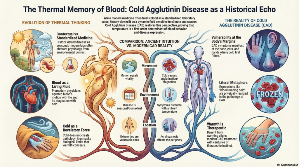 Cold agglutinin disease sits squarely within this long intellectual lineage. It is modern in mechanism, but ancient in intuition.1