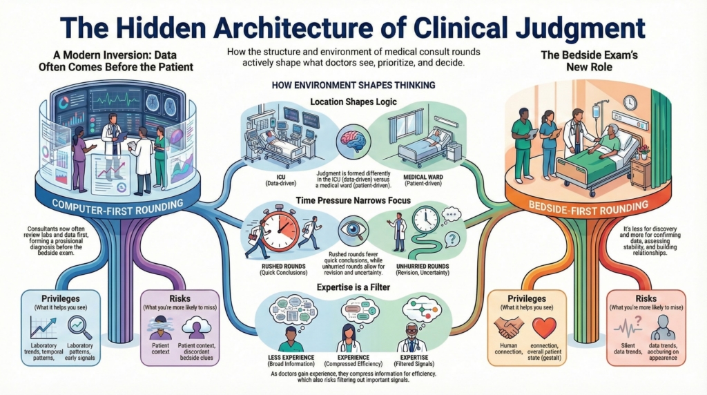 It was a reminder that in some rounding structures, seeing the patient becomes optional ā and that this optionality carries real cognitive risk.