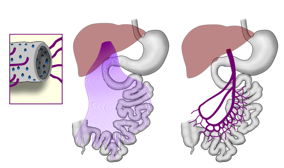 Galen develops a second counterfactual model concerning the structure of the liver itself. Why, he wonders, is the liver not a hollow cavity, with the portal vein entering and the hepatic vein leaving like pipes in a vat? He rejects the idea because blood cannot be formed in a void. What the liver requires, he insists, is not an empty vat but a dense mesh of interlacing portal and hepatic branches that slow the flow, multiply contact with the parenchyma, and give Nature time to “change the nutriment completely into blood.” For elaboration to occur, nutriment must be slowed, retained, and spread across a dense network of communicating vessels. Interlacing channels create surface area; they hold the blood long enough for transformation. A cavity would let nutriment pass too swiftly, defeating Nature’s purpose. The meshwork of vessels, therefore, is a functional necessity.