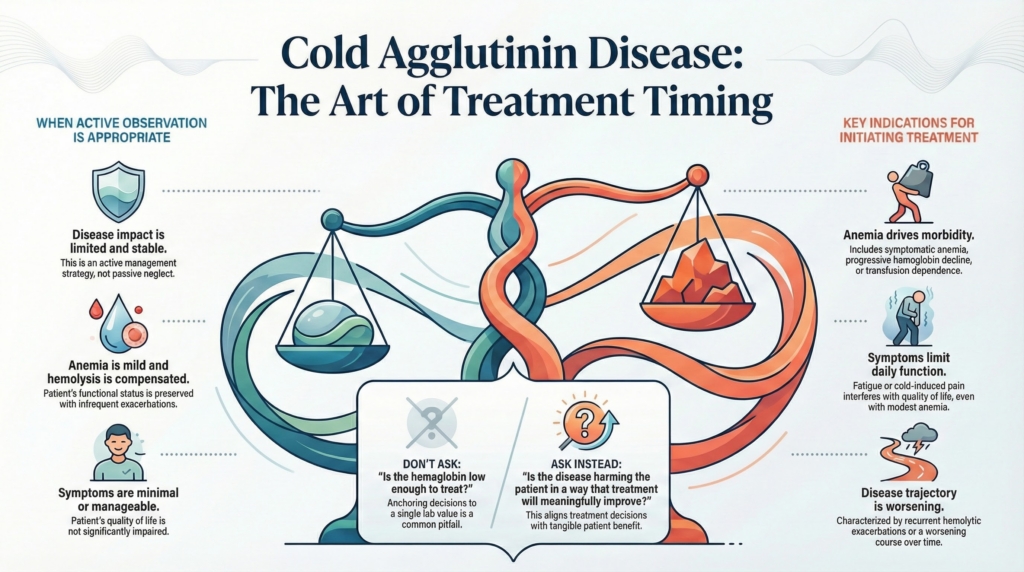 In cold agglutinin disease, knowing when not to treat is as important as knowing how to treat.